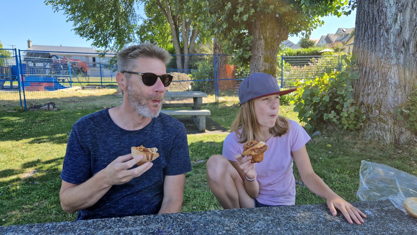 Unterwegs machten wir einen Stopp in Ladysmith. Ein wunderschönes kleines Städtchen in der Lenas Lieblingsbäckerei befindet. Da deckten wir uns mit Leckereien wie Zimtschnecken und Lenas Cinnamon Buns ein. In einer kleinen Brauerei assen wir zu Mittag und fuhren dann nach Chemainus, um uns Lenas Schule anzusehen. Danach fuhren wir ihren Schulweg bis nach Crofton ab.